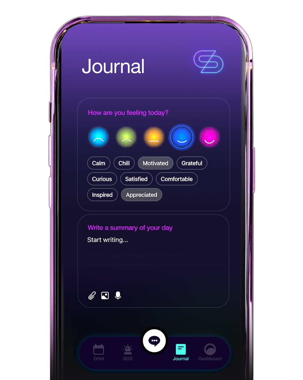 From day one, you can get thoughts out of your head, feel less alone, access grounding support when emotions spike, and follow guided paths forward.